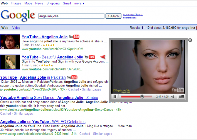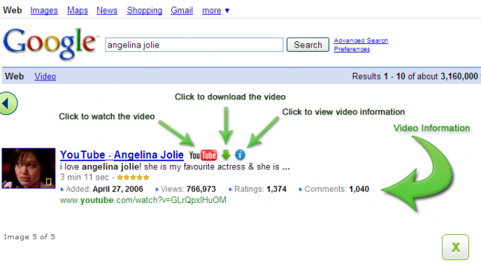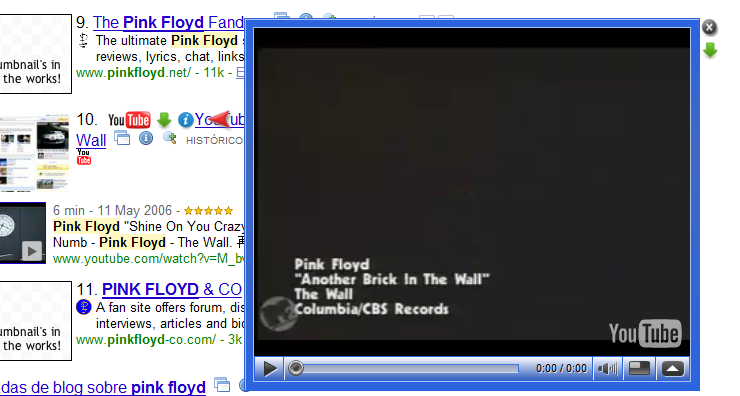 Este complemento añade un icono de YouTube a los resultados de la búsqueda de Google. Al hacer clic en el icono se abre el vídeo de YouTube en la misma página para tu deleite.