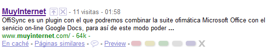 El addon GooglePreview añade una pequeña previsualización de la página, así como la posición de popularidad de la misma. De manera que podrás echarle un vistazo rápido antes de hacer clic en el resultado de la búsqueda.