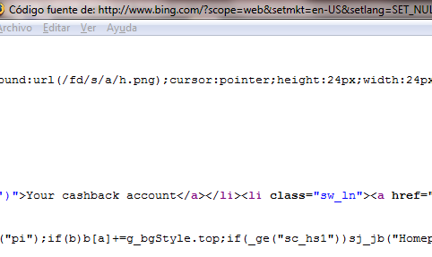 Si lo que realmente quieres es aprovechar las bonitas imágenes para ponerlas como fondo de escritorio, hay una manera de hacerlo llegando a la dirección URL de la imagen. En primer lugar tendrás que mirar el código fuente de tu navegador pinchando encima de la imagen de Bing. Tras esto haz clic en la parte superior en Editar y dentro de Editar en Buscar y desde ahí inserta g_img. Tras esto te aparece la URL encontrada en el código, que en este caso sería: url:’/fd/hpk2/FloatingMarket_EN-US520414795.jpg