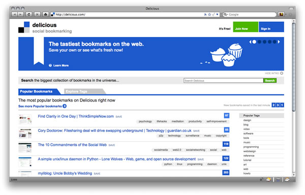 Delicious es otra de las extensiones con las que podrás tener sincronizados tus marcadores. Está disponible tanto para Firefox, como para Internet Explorer 8, Safari o Chrome. El servicio permite agregar los marcadores que clásicamente se guardaban en los navegadores y categorizarlos con un sistema de etiquetado denominado folcsonomías (tags). No sólo puede almacenar sitios webs, sino que también permite compartirlos con otros usuarios de Delicious y determinar cuántos tienen un determinado enlace guardado en sus marcadores. Uno de los secretos de su éxito es quizá la sencillez de su interfaz, usando HTML muy simple y un sistema de URLs legible. Además posee un flexible servicio de sindicación web mediante RSS y una API que permite hacer rápidamente aplicaciones que trabajen con él.