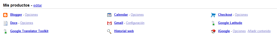 Después, una vez que estés dentro, en Mis productos, haz clic en Opciones justo al lado del apartado iGoogle.
