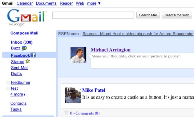 A pesar de ello, mientras esto ocurre, podemos hacer que Buzz esté acompaña de Facebook en Gmail. Os preguntaréis cómo es esto posible, pues lo es gracias a una extensión para Chrome que añade Facebook a la barra lateral izquierda de Gmail, justo debajo de Buzz.