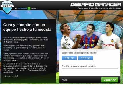 En el caso de Desafio Manager, su tiempo on-line es muy escaso. El proyecto lanzado por resultados-futbol.com tiene la misma modalidad de negocio: el usuario puede crear su equipo, entrenarlo y competir con otros. Sin embargo, este servicio tiene la ventaja de ser más actual y novedoso.