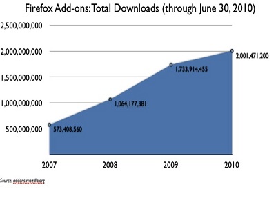 Precisamente ayer la compañía informó que se ha descargado ya la extensión número 2.000 millones. La extensión 1.000 millones se descargó el 19 de Noviembre del 2008, y tardó tres años en llegar desde que en Mozilla empezaron a monitorizar estos datos. Sin embargo, sólo ha hecho falta un año y medio para doblar esa cantidad.