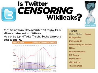 Según indican en su blog oficial, Twitter no ha practicado la censura a WikiLeaks, asegurando además, que ni #WikiLeaks ni #CableGate, el hashtag creado para clasificar en la red social el contenido relacionado a los cables diplomáticos, fueron trending topics.