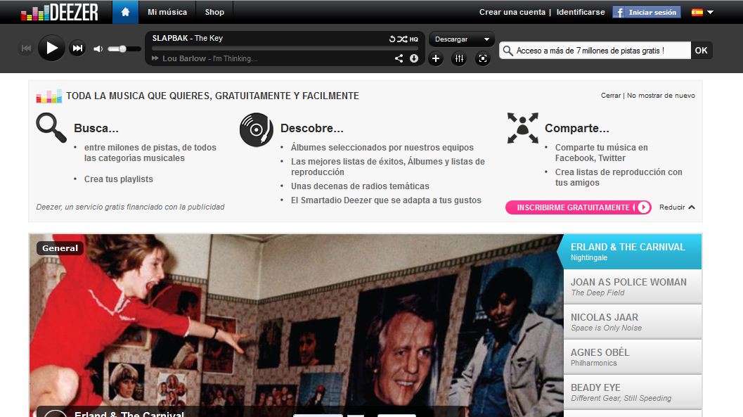 Deezer permite escuchar una buena cantidad de canciones con una interfaz capaz de agregar canciones a una lista de reproducción o a una misma secuencia de reproducción. Es competente, pero no hace nada que no haga otro de los que ya mencionamos.