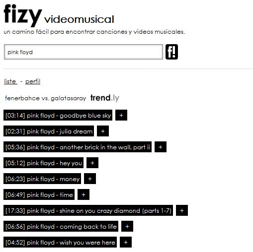 Fizy es muy simple, pero funciona muy bien. Buscas un artista y lista todas las canciones en su haber. Una vez encontrado, puedes crear una lista de reproducción, hacer sonar todas o simplemente ver vídeos de las que quieras. No busca ser más de lo que es, y quizá ese sea su punto fuerte.
