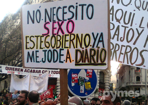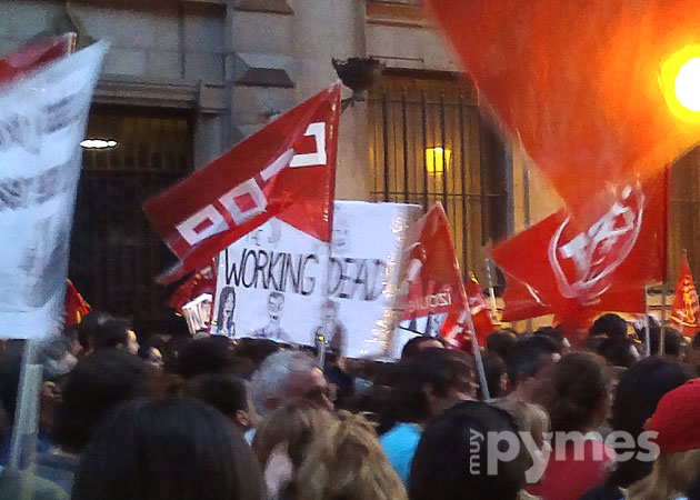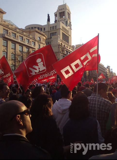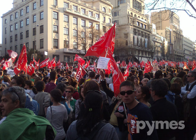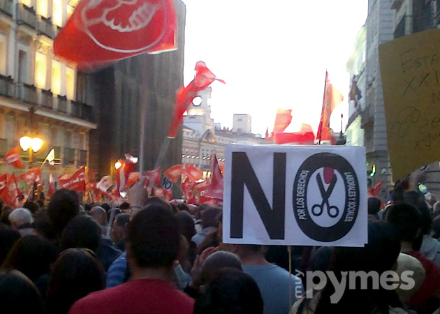Según los sindicatos, casi 900.000 personas se unieron a la manifestación que ayer recorrió el centro de Madrid para protestar contra la reforma laboral. En MuyPymes quisimos ser testigos de la manifestación y para ello hemos preparado una completa fotogalería con lo que han sido los momentos más interesantes del evento.