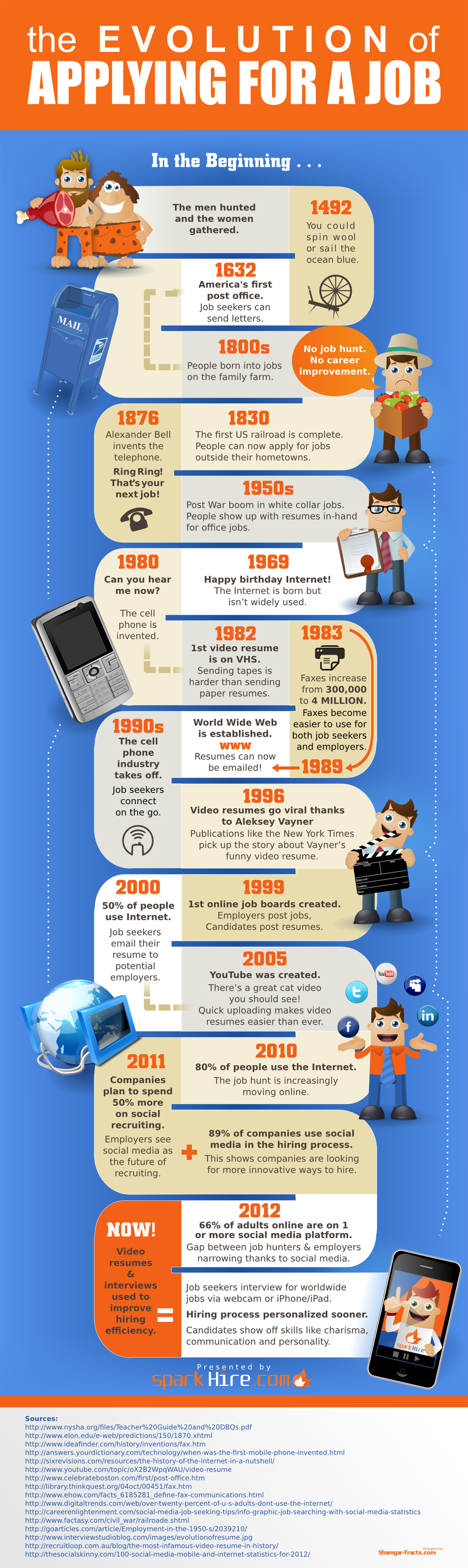 Una curiosa infografía elaborada por Spark Hire nos muestra cómo ha evolucionado la historia a la hora de conseguir un trabajo. Concretamente desde el comienzo de todo, pasando por el año 1492, fecha del descubrimiento de América, llegando hasta el 1876, el año en el que se inventó el teléfono, hasta nuestros días.