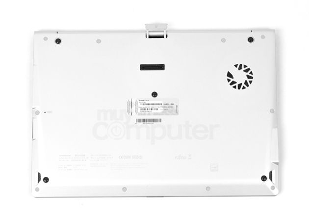 El material pulido del exterior tiene un tacto muy agradable. El ensamblaje no se puede definir con otro término que no sea perfectosin ningún juego o crujidos sospechosos. El diseño de la tapa incluso se ha estudiado para que abrir el equipo sea más sencillo, incluso con una sola mano. Pero lo que más transmite este portátil desde cerrado es elegancia. Incluso el logo de Fujitsu grabado en la parte superior transmite una atención a los detalles muy de agradecer.