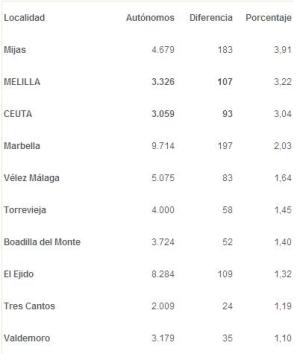 Marbella, Vélez Málaga, El Ejido y Mijas, son los pueblos andaluces donde existe un aumento de autónomos superior al 1%. María José Landaburu, Secretaria General de UATAE, ha asegurado que «en un año en el que hemos sufrido una pérdida global del 50.000 autónomos, son municipios como estos los que nos han de servir de guía».