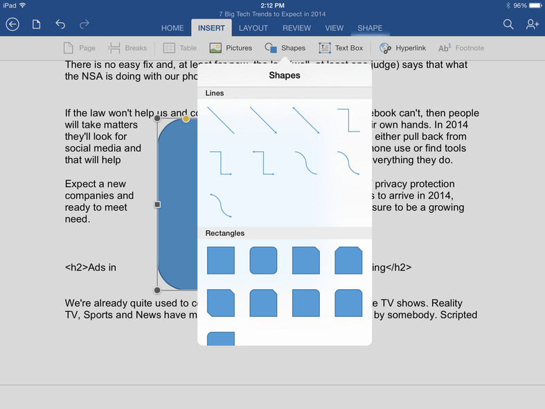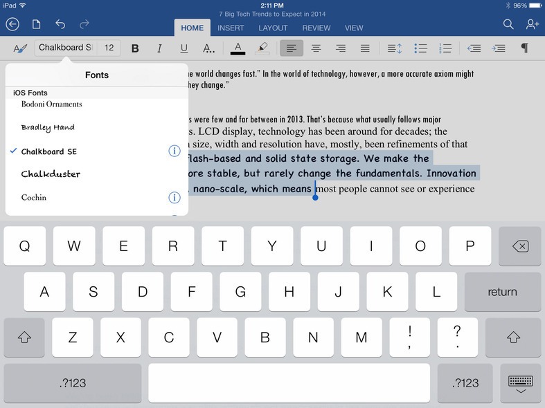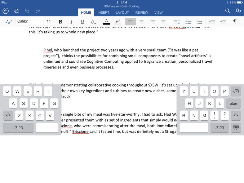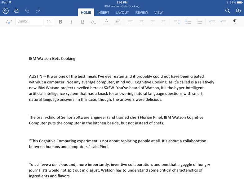 Lo primero que llama la atención de Office para iPad es que aunque las apps están completamente adaptadas a las guías de diseño de iOS 7, también lo están a lo que esperamos encontrar en Office. En un diseño más elegante incluso que en las versiones para escritorio, encontramos un ya clásico Ribbon que se adapta a nuestras necesidades en todo momento, ofreciéndonos de forma sorprendente, casi todas las opciones que encontramos en las versiones para escritorio.