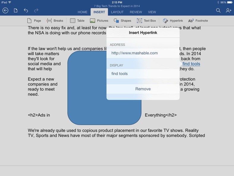 Otro detalle curioso es que finalmente Microsoft ha acabado presentando Office en el iPad antes que en sus propias tablets. Es cierto que las tablets equipadas con Windows 8 RT disponen de una versión de Office propia, pero en realidad, no está adaptada a las características de una tablet táctil, sino que sigue siendo la misma versión de escritorio que podemos disfrutar en Windows 8 Pro. Se rumorea no obstante que una versión completamente adaptada a Modern UI podría ver la luz este mismo año, toda vez que finalmente y como ha quedado demostrado, se priorizó el desarrollo de la versión para iOS.