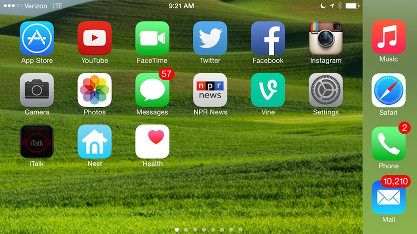 Mientras que con iOS 7 los usuarios podían leer el contenido en modo horizontal, la pantalla de inicio nunca cambiaba. Ahora, los usuarios de iOS 8 pueden girar el dispositivo 90 grados y ver las aplicaciones que aparecen en la pantalla de inicio en cualquier formato.