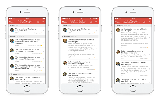 El nuevo registro de actividad permite que todos los usuarios de la empresa puedan visualizar el progreso del equipo en sus tareas, manteniendo sincronizadas sus tareas, de modo que todos los miembros de un proyecto saben qué es lo que hay que hacer y en qué momento.