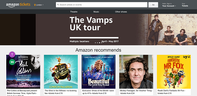 Amazon podría entrar en el sector de la venta de entradas en España. «Amazon Tickets» que así se llama el programa, se estrenó con éxito el año pasado en Reino Unido y según informan en recode, en 2017 la multinacional podría expandir su venta de entras on-line para todo tipo de espectáculos a otros países de Europa y Estados Unidos.