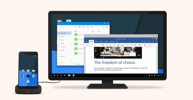 Ahora redoblan la apuesta y lanzan Remix Singularity, su ROM para teléfonos inteligentes. Basada de nuevo en Android, Singularity se presenta como una suerte de «Windows Continuum» para Android. Esto es, una vez que conectemos un teléfono equipado con Remix Singularity a una «docking station», podremos pasar a utilizar Android en un equipo de escritorio, adoptando eso sí, el look and feel que ya conocíamos en el Remix OS original.
