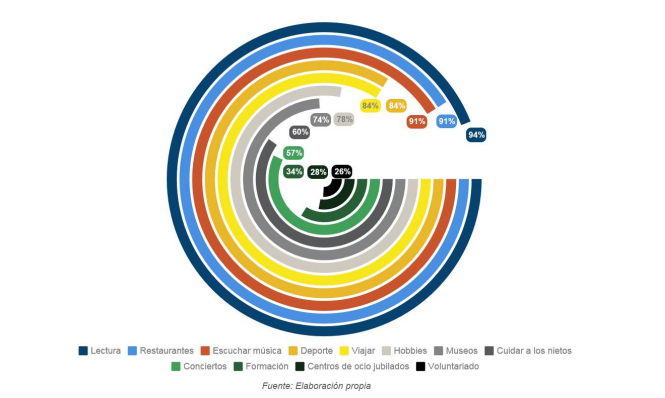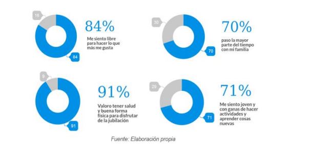 Además lejos queda la imagen del jubilado «mayor» que se queda en casa. Como indica la entidad bancaria, seiete de cada diez declaran sentirse «jóvenes», entusiasmados para hacer todo tipo de actividades y cosas nuevas. El librarse de su rutina les permite dedicar más tiempo a sus aficiones (78%) y un 26% es voluntario en todo tipo de programas de ayuda a personas en riesgo de exclusión social.