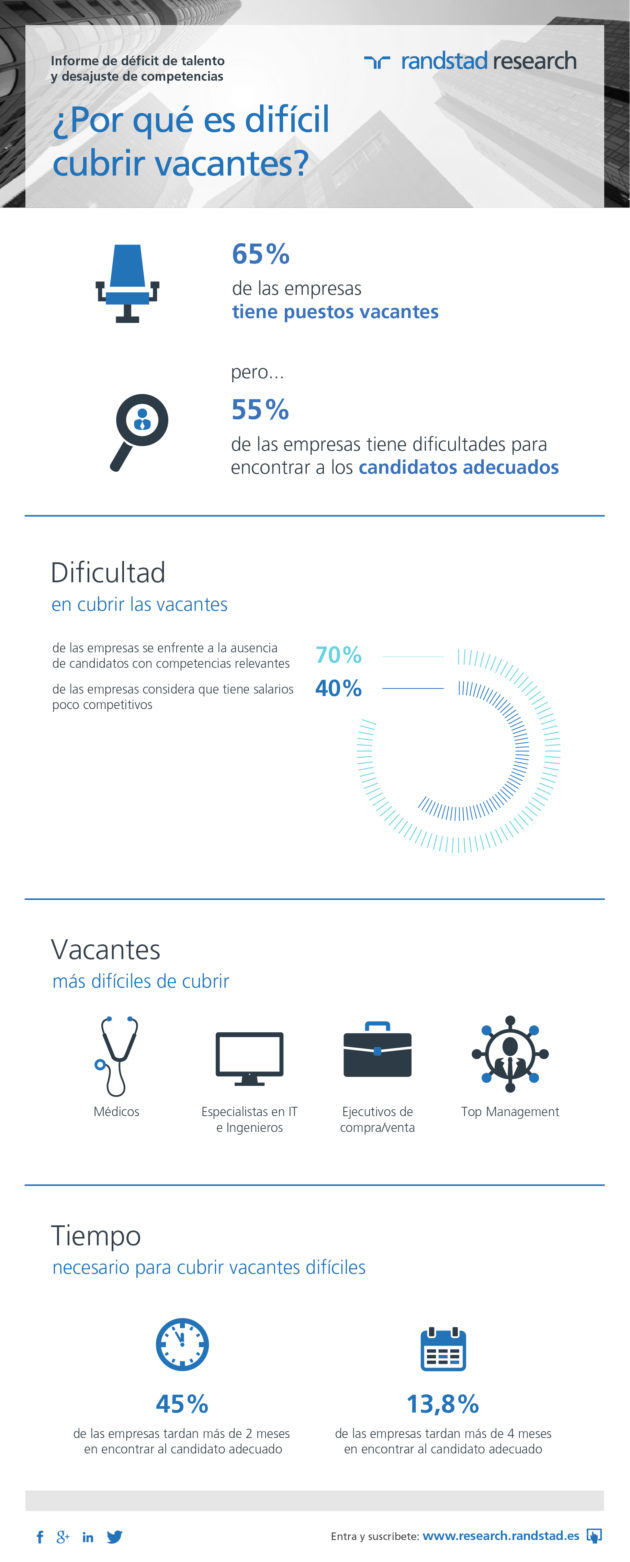 España sufre una crisis de talento. O de formación. O de ambas cosas. Es lo que podría deducirse del último informe de Ranstad Research (“Déficit de talento y desajuste de competencias”), en el que se afirma que hasta el 55% de las empresas españolas tienen dificultades a la hora de encontrar candidatos adecuados a sus ofertas de trabajo.