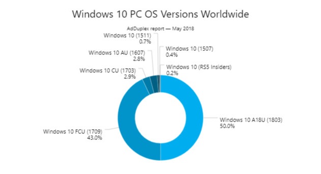 Echando un vistazo a los datos que ha publicado AdDuplex podemos ver que la Windows 10 April Update 2018 ya tiene una cuota de mercado del 50%, un dato muy positivo que la convierte en la actualización que más rápido se está instalando de todas las que ha lanzado hasta el momento Microsoft.