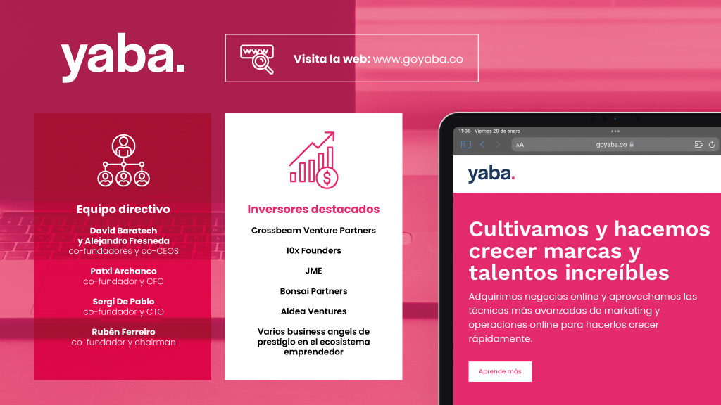 Yaba es una startup fundada hace solo dos años, con el objetivo de construir un operador de marcas nativas digitales de la talla de las colosales compañías de bienes de consumo, especializada íntegramente en el sector digital. Está de actualidad porque han conseguido levantar 73 millones de euros en su última ronda de financiación, entre deuda y equity.