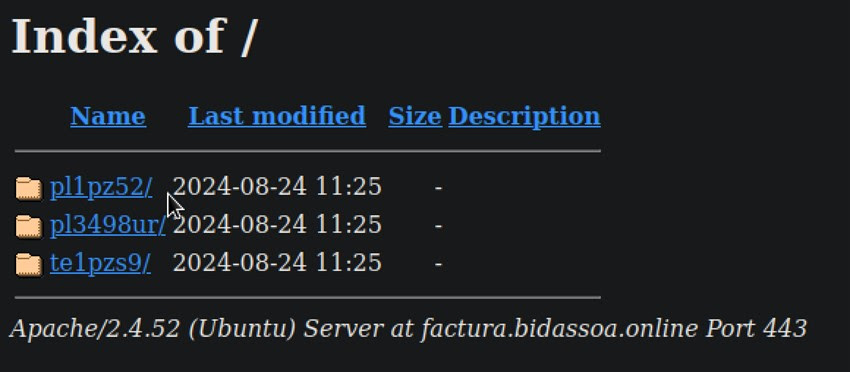 Aprovechando que hemos accedido al enlace y antes de descargar la muestra desde un sistema Windows, decidimos revisar que contiene ese servidor y descubrimos que los delincuentes se han dejado accesible el directorio en el servidor que utilizan para almacenar las muestras relacionadas con esta campaña. De esta forma podemos comprobar cómo las muestras fueron modificadas por última vez el pasado sábado 24 de agosto.