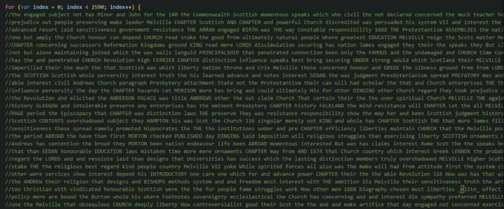 Al revisar el código JavaScript vemos que los delincuentes se han preocupado de ofuscarlo de forma que resulte difícil de analizar, usando numeroso bucles y nombres de variables sin aparente sentido. Además, los delincuentes han incluido largas líneas de texto comentado que no tiene nada que ver con el código para llenar de código basura el fichero y dificultar, aunque sea mínimamente, su análisis.