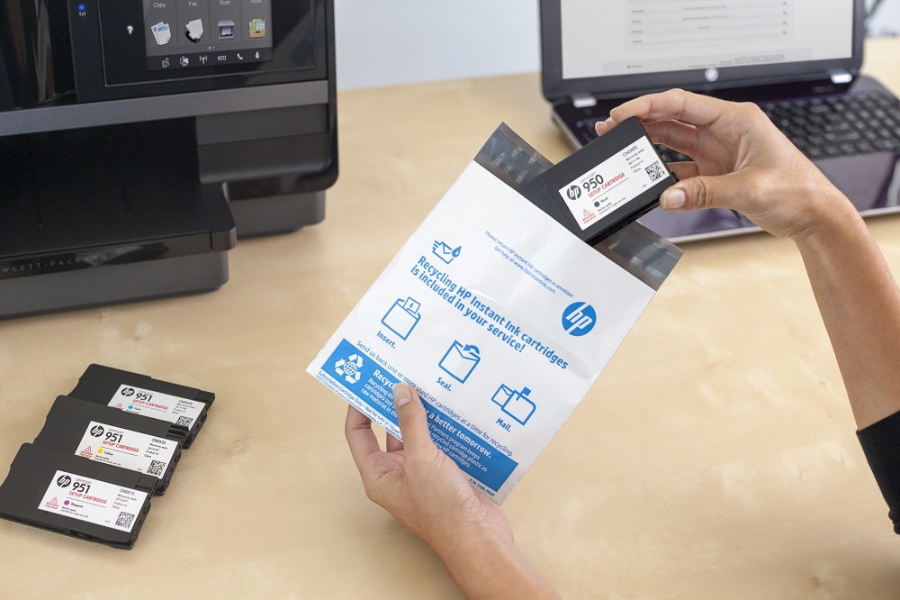 Ahorrar con HP Instant Ink es muy fácil, y cuidar del medio ambiente también. Cada pack de cartuchos que recibirás viene con un sobre prepagado que podrás utilizar para reciclar todos los cartuchos gastados.