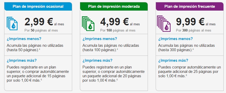 Muy fácil, cuando nos registramos elegimos un plan en función de las páginas que vamos a imprimir al mes y cuando necesitamos un recambio la propia impresora da el aviso, de manera que recibiremos el nuevo consumible antes de que se agote el anterior.
