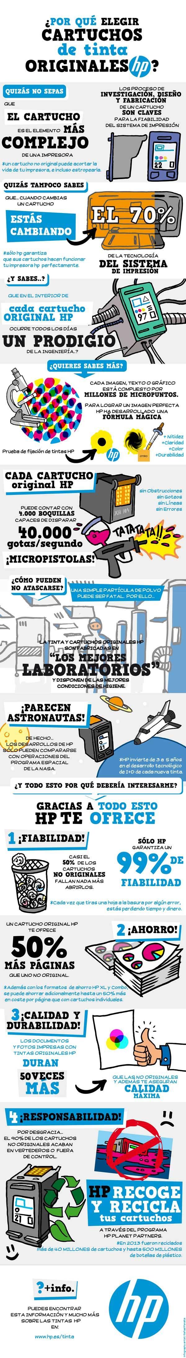 Nada mejor que la siguiente infografía para saber por qué conviene apostar por los cartuchos originales HP y no correr riesgos ni exponernos a malos resultados: