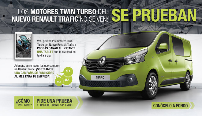 Noticias Nuevo Renault Trafic, el motor de tu éxito En el mes de noviembre Renault lanza al mercado el Nuevo Trafic. Diseñado para ser el motor del éxito de pymes y emprendedores que... Redaccion4 noviembre, 2014